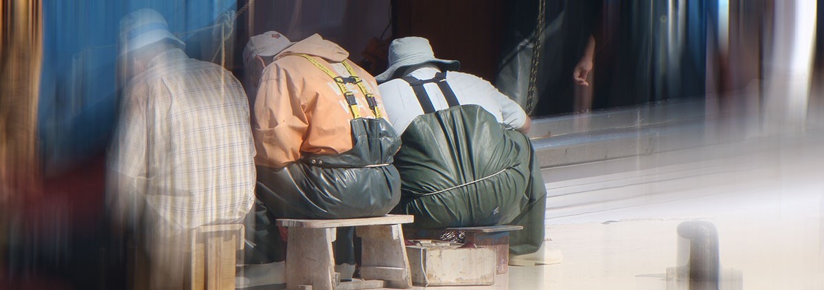 Amid clusters of dark seaweed